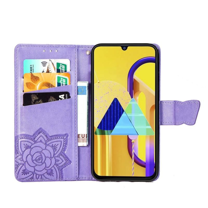 Για Galaxy M30S / M21 Θήκη Δερμάτινη Οριζόντιας Αναδίπλωσης με ανάγλυφο σχέδιο Πεταλούδας και Λουλουδιών, με Στήριγμα / Θήκη Κάρτας / Πορτοφόλι / Λουρί (Μαύρο)