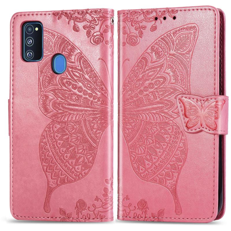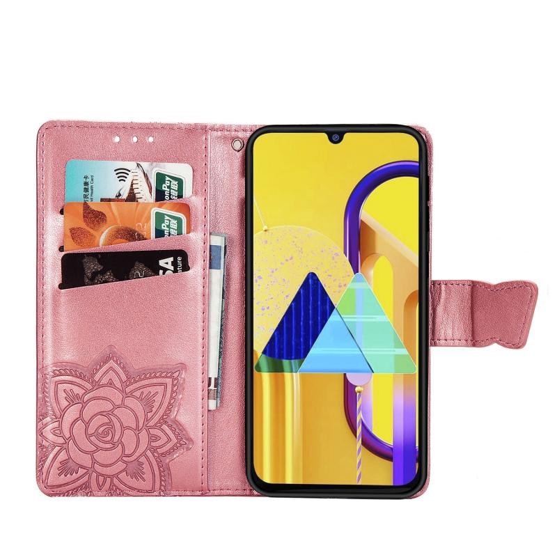 For Galaxy M30S / M21 Butterfly Love Flower Embossed Horizontal Flip Leather Case with Bracket / Card Slot / Wallet / Lanyard(Pink)