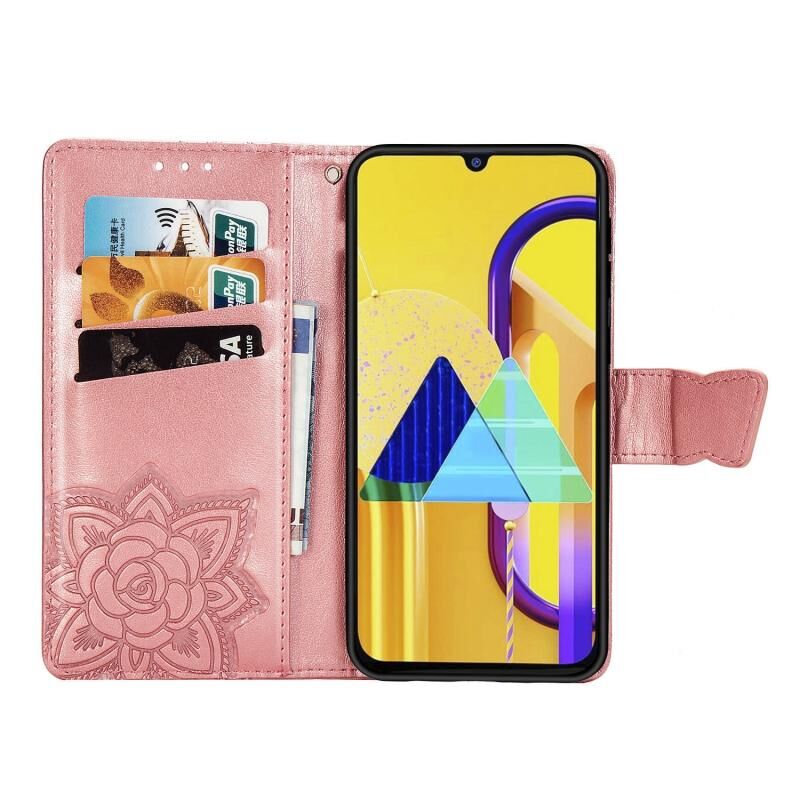 Για Galaxy M30S / M21 Θήκη Δερμάτινη Οριζόντιας Αναδίπλωσης με ανάγλυφο σχέδιο Πεταλούδας και Λουλουδιών, με Στήριγμα / Θήκη Κάρτας / Πορτοφόλι / Λουρί (Μαύρο)
