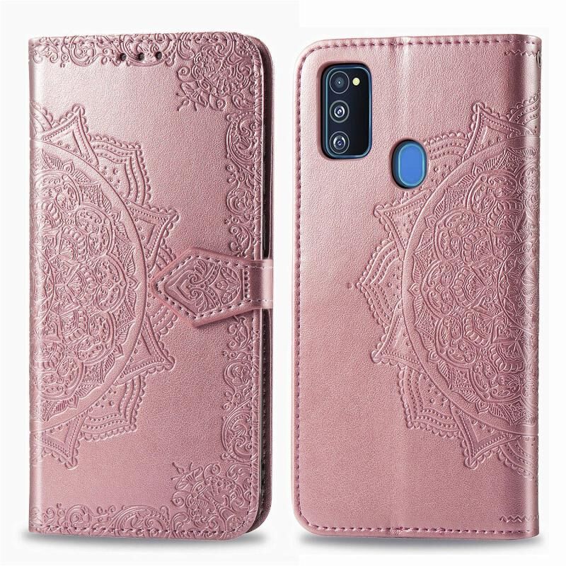 Θήκη δέρματος οριζόντιας αναδίπλωσης με ανάγλυφο σχέδιο Mandala για Galaxy M30S/M21 με βάση / υποδοχή κάρτας / πορτοφόλι / κορδόνι (Μαύρο)
