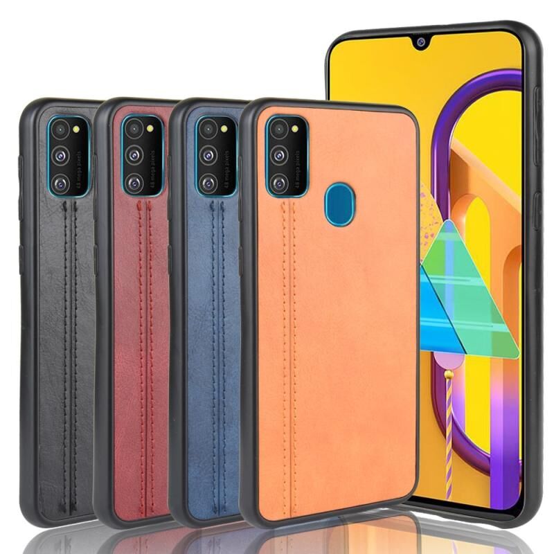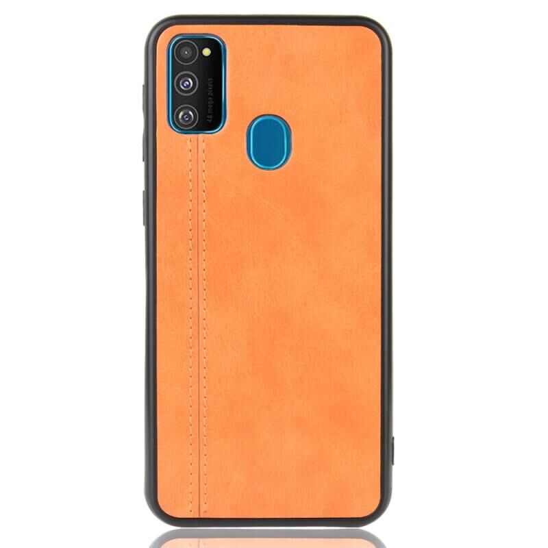 Για το Galaxy M30s Shockproof Ράψιμο μοτίβο αγελάδας δέρμα PC + PU + TPU υπόθεση (πορτοκαλί)