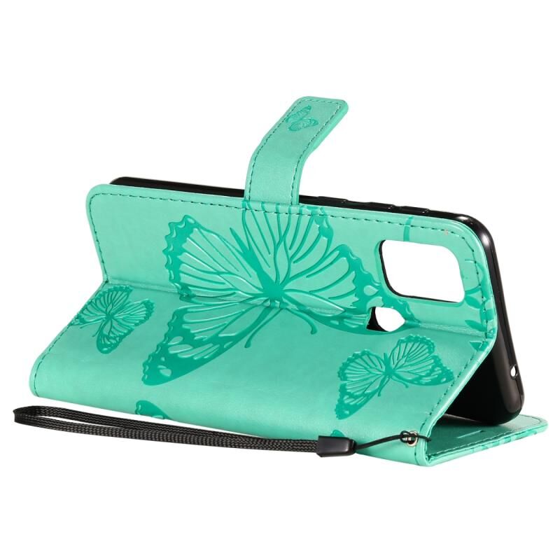 Θήκη δέρματος οριζόντιας αναδίπλωσης με ανάγλυφο σχέδιο 3D πεταλούδων για Galaxy M31 με βάση, θήκη καρτών, πορτοφόλι και λουρί (Πράσινο)
