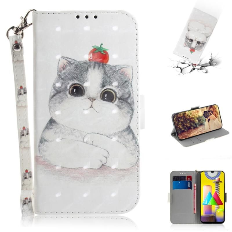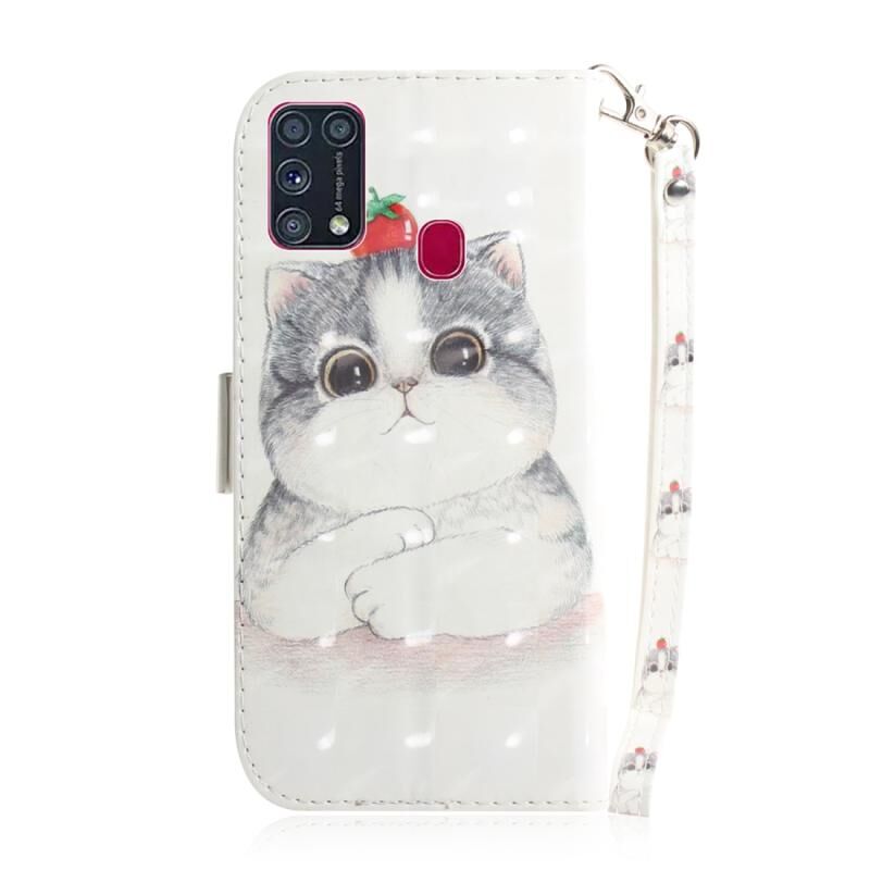 Θήκη δέρματος με οριζόντιο άνοιγμα, πολύχρωμο σχέδιο 3D για Galaxy M31 με βάση στήριξης, θήκη για κάρτες, πορτοφόλι & λουρί (Χαριτωμένη Γάτα)