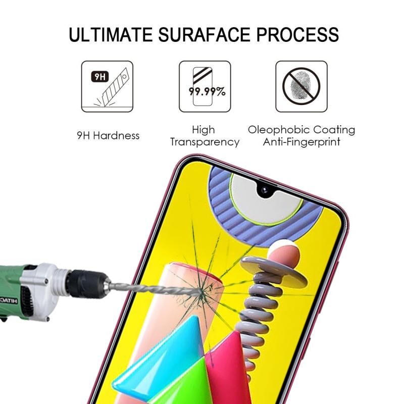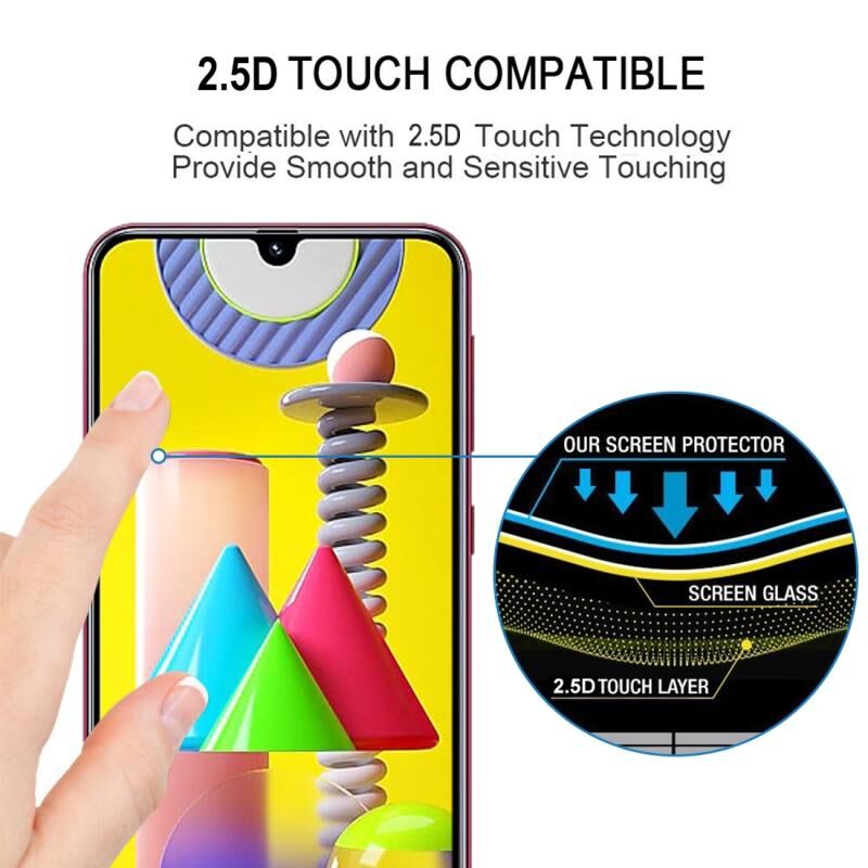 Για το Galaxy M31 9H επιφανειακή σκληρότητα 2.5D πλήρης κόλλα πλήρους οθόνης μετριασμένη γυάλινη μεμβράνη