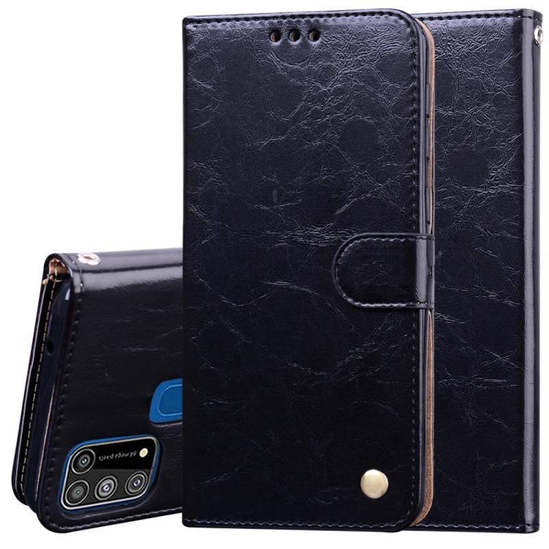 Για Galaxy M31 Business Style Oil Wax Texture Horizontal Flip Leather Case, με θήκη & υποδοχές για κάρτες & πορτοφόλι (μαύρο)