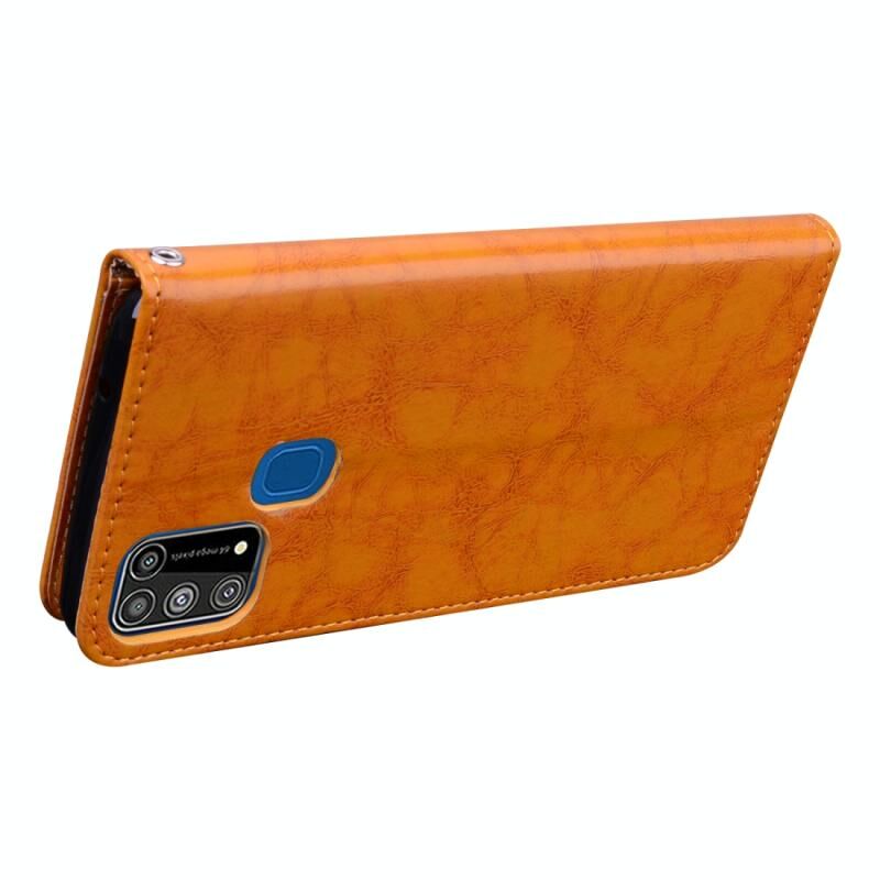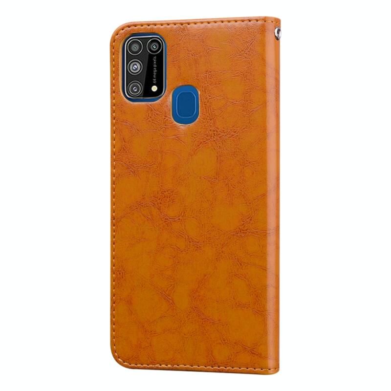 Για Galaxy M31 Business Style Oil Wax Texture Horizontal Flip Leather Case, με θήκη & υποδοχές για κάρτες & πορτοφόλι (καφέ)