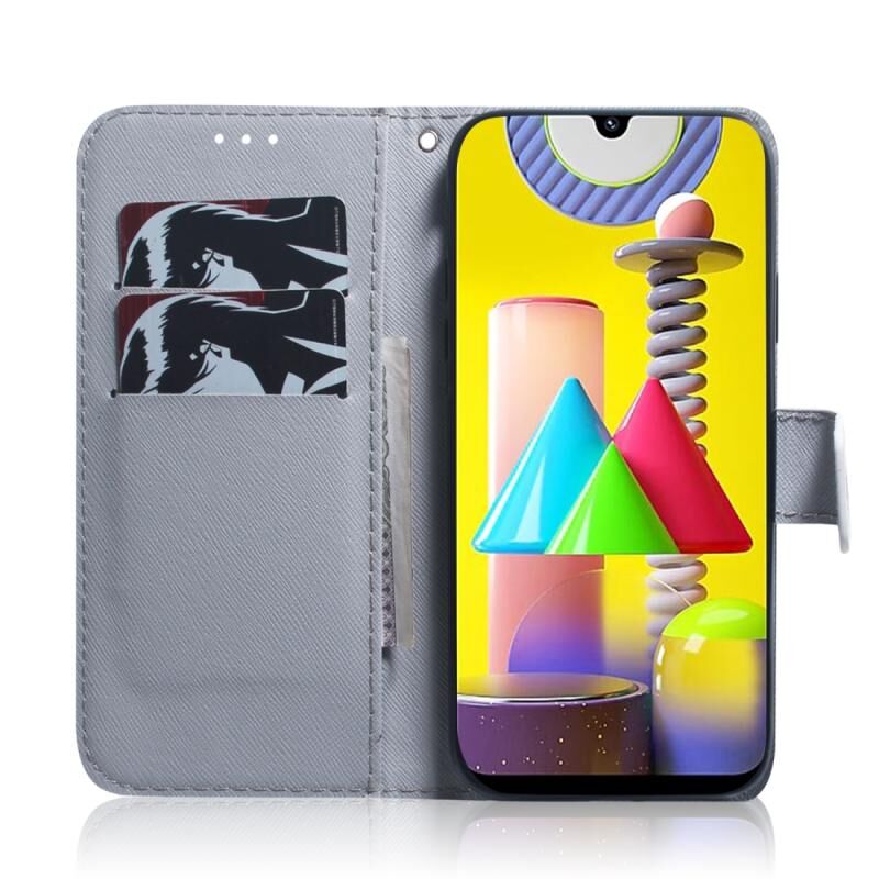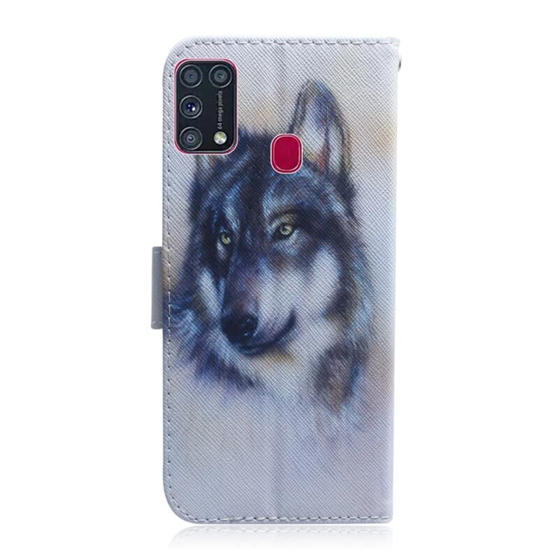 Θήκη δέρματος οριζόντιας αναδίπλωσης με βάση & υποδοχή κάρτας & πορτοφόλι για Galaxy M31 (Λευκός Λύκος)