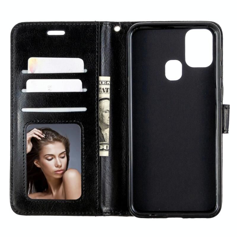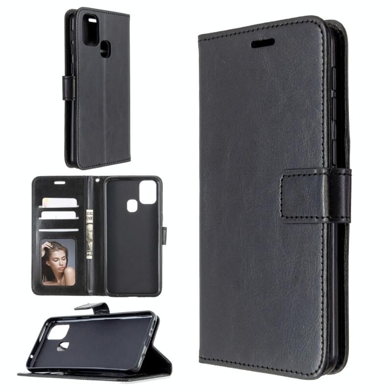 Για Galaxy M31 Crazy Horse Υφή οριζόντια Flip δερμάτινη θήκη με θήκη & υποδοχές για κάρτες & πορτοφόλι & πλαίσιο φωτογραφιών (μαύρο)