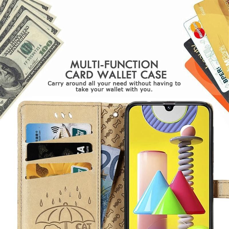 Θήκη δέρματος οριζόντιας αναδίπλωσης με ανάγλυφα σχέδια χαριτωμένων γάτας και σκύλου για Galaxy M31, με βάση στήριξης / υποδοχή κάρτας / πορτοφόλι / κορδόνι (Χρυσό ροζ)