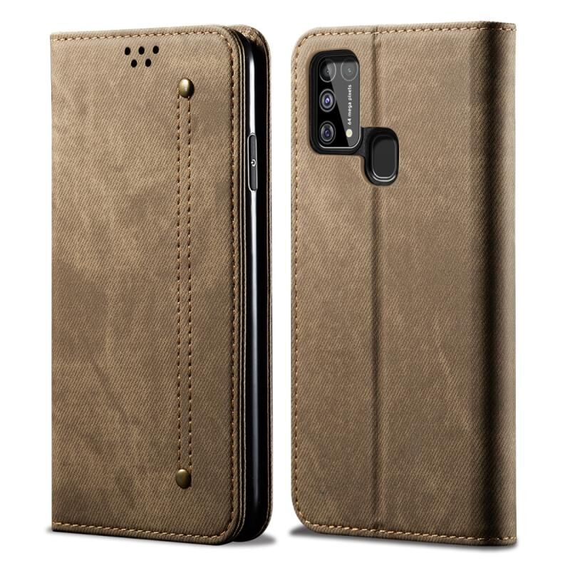 Για Galaxy M31 Denim υφή Casual στυλ οριζόντια Flip δερμάτινη θήκη με κάτοχο & υποδοχές για κάρτες & πορτοφόλι (Χακί)