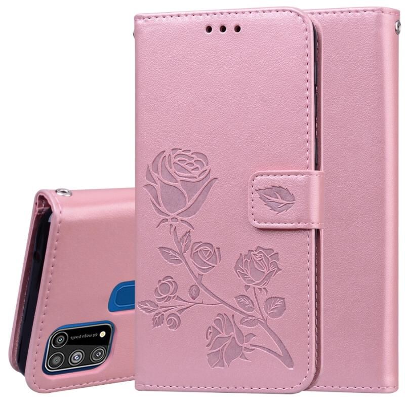 Θήκη για Galaxy M31 Rose Embossed Οριζόντια Δερμάτινη PU με Θήκη & Θήκες Καρτών & Πορτοφόλι (Χρυσό)