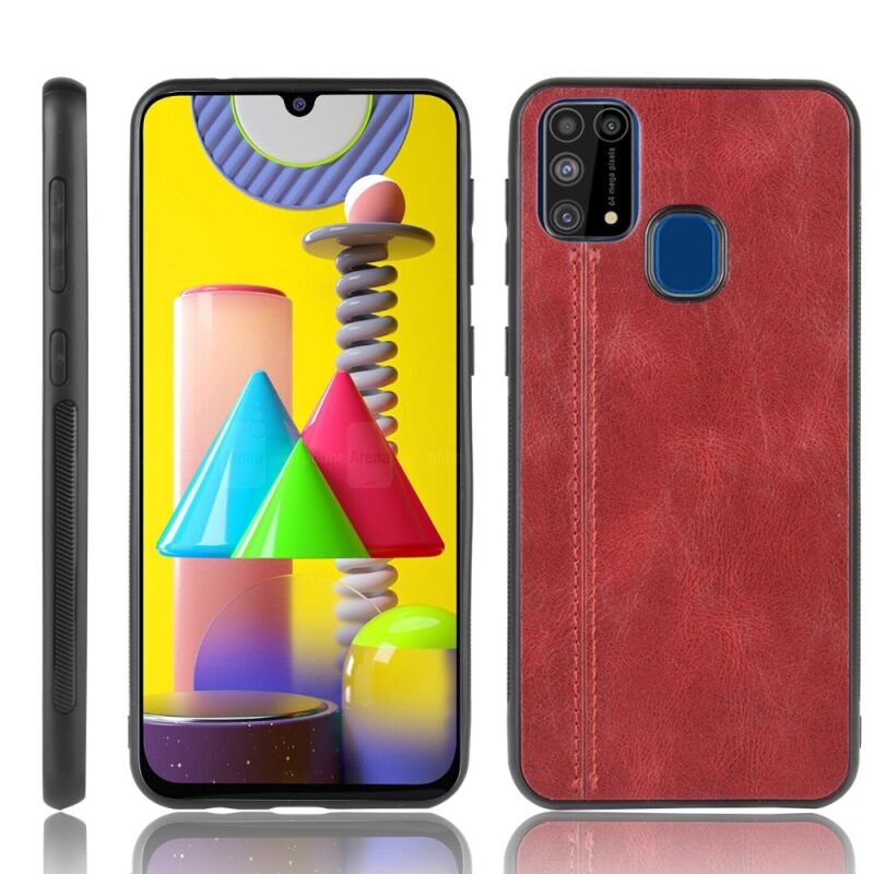 Για το Galaxy M31 Shockproof Ράψιμο μοτίβο αγελάδας δέρμα PC + PU + TPU υπόθεση (κόκκινο)