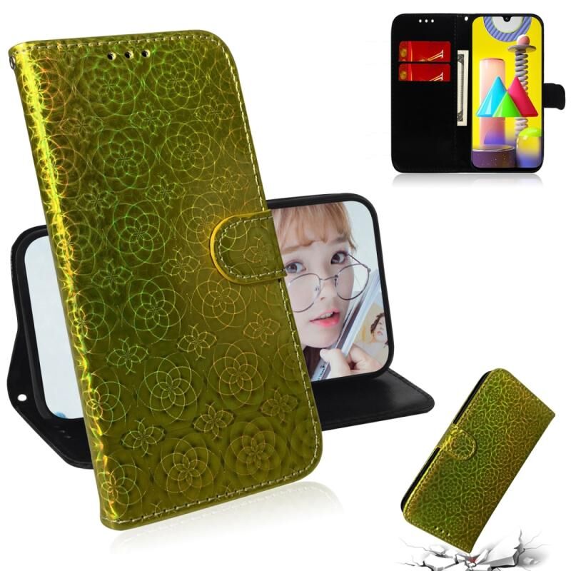 Για Galaxy M31 Αμιγές χρώμα πολύχρωμο μαγνητικό πόρπη οριζόντια Flip PU δέρμα υπόθεση με κάτοχο & υποδοχές για κάρτες & πορτοφόλι & Lanyard (χρυσό)