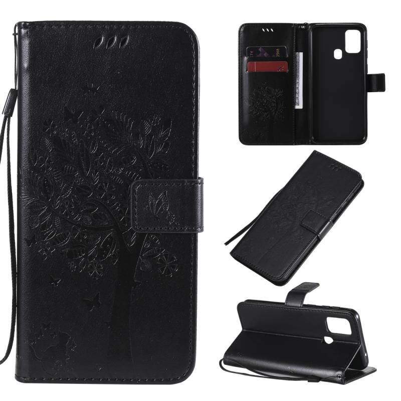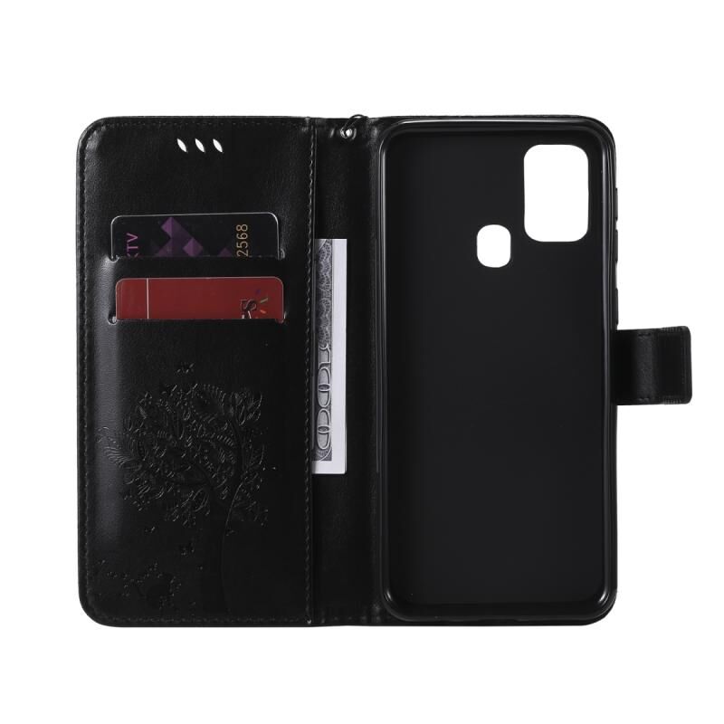 Θήκη για Galaxy M31 με σχέδιο Δέντρου & Γάτας, εκτύπωση με πίεση, οριζόντια αναδίπλωση, από δερματίνη PU με βάση & υποδοχές καρτών & πορτοφόλι & κορδόνι (Μπλε)