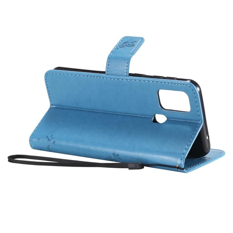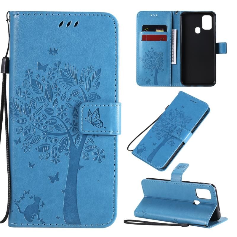 Θήκη για Galaxy M31 με σχέδιο Δέντρου & Γάτας, εκτύπωση με πίεση, οριζόντια αναδίπλωση, από δερματίνη PU με βάση & υποδοχές καρτών & πορτοφόλι & κορδόνι (Μπλε)