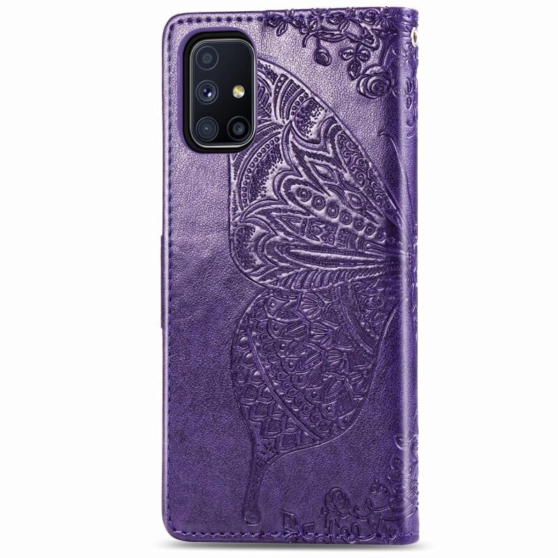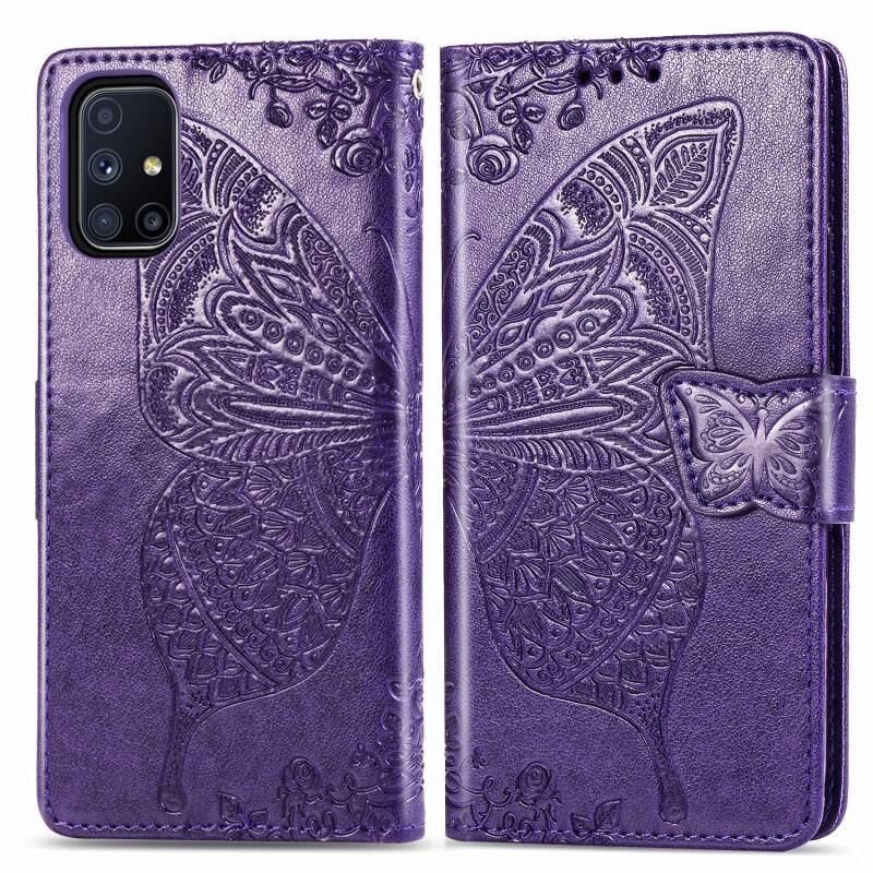 Θήκη βιβλίου από δέρμα οριζόντιας αναδίπλωσης για Galaxy M51 με ανάγλυφο σχέδιο πεταλούδας και λουλουδιών, με βάση στήριξης / υποδοχή κάρτας / πορτοφόλι / κορδόνι (Μπλε)