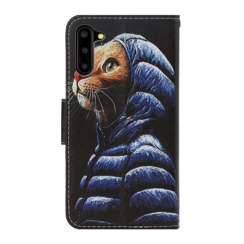 Θήκη για Galaxy Note 10 3D πολύχρωμη σχέδιο οριζόντια αναδιπλούμενη από δερματίνη PU με βάση & υποδοχές καρτών & πορτοφόλι (Γάτα με μπουφάν)