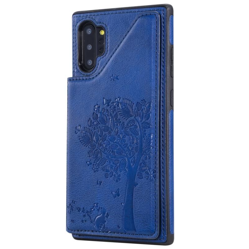 Θήκη προστασίας για Galaxy Note 10+ με σχέδιο ανάγλυφου γατίσματος, αντικραδασμική με υποδοχές καρτών & κορνίζα φωτογραφιών & βάση στήριξης (Μπλε)