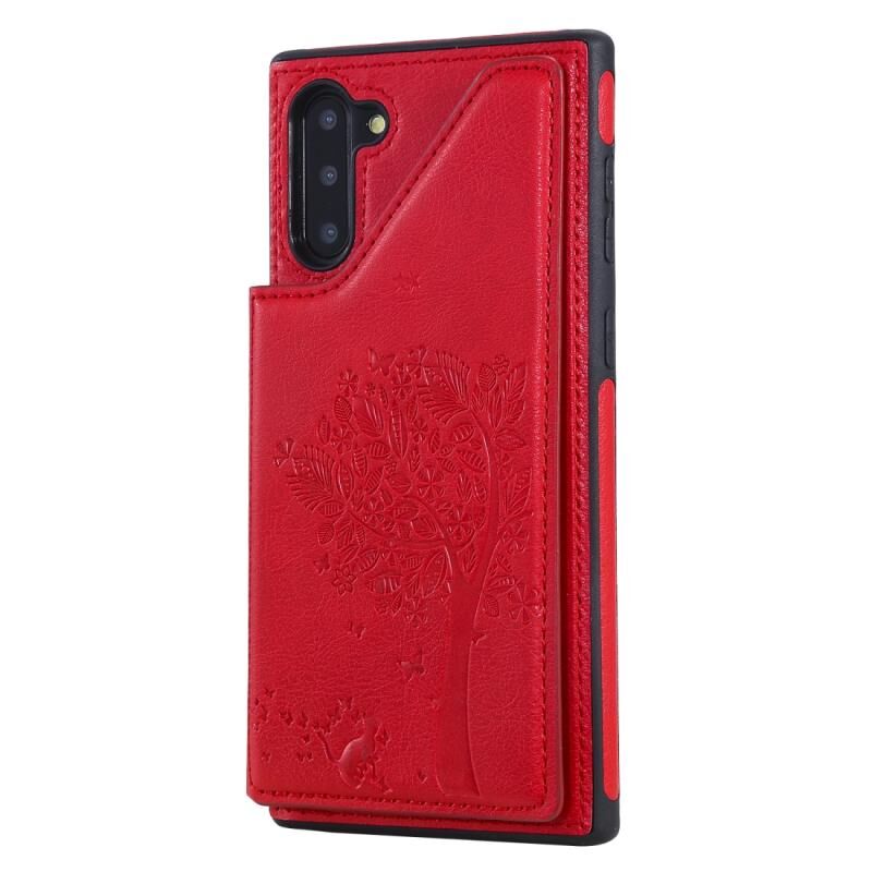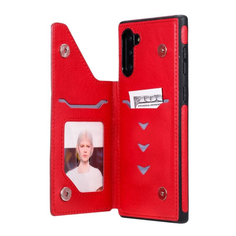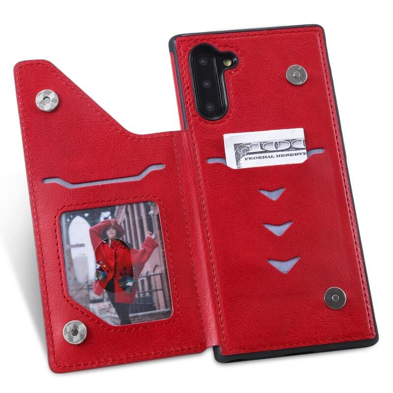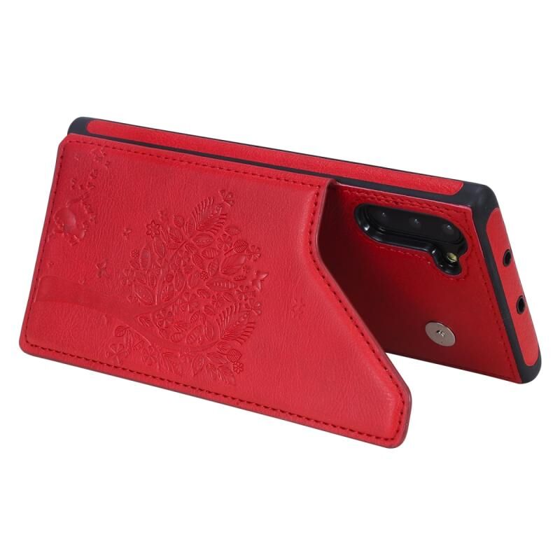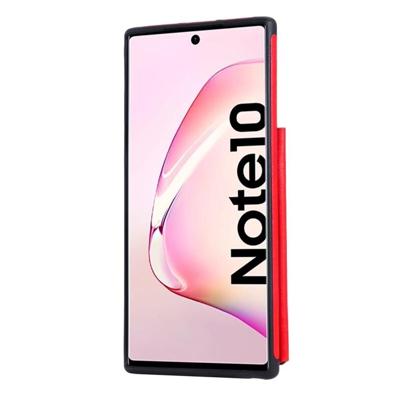 Θήκη προστασίας για Galaxy Note 10 με ανάγλυφο σχέδιο, αντικραδασμική, με θήκες για κάρτες, κορνίζα φωτογραφιών και βάση στήριξης (Κόκκινο)