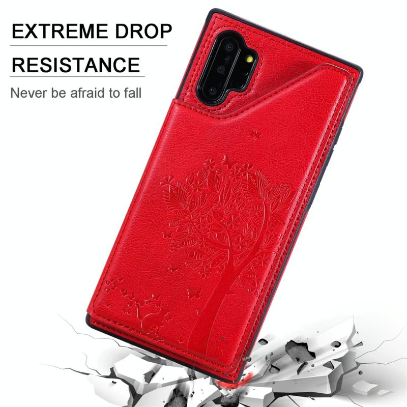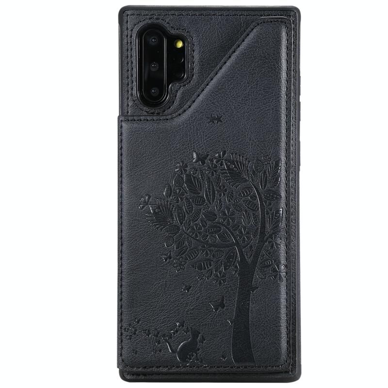 For Galaxy Note 10+ Cat Tree Embossing Pattern Shockproof Protective Case with Card Slots & Photo Frame(Black)