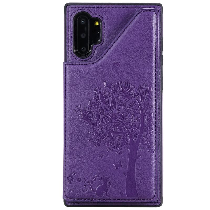 For Galaxy Note 10+ Cat Tree Embossing Pattern Shockproof Protective Case with Card Slots & Photo Frame(Purple)