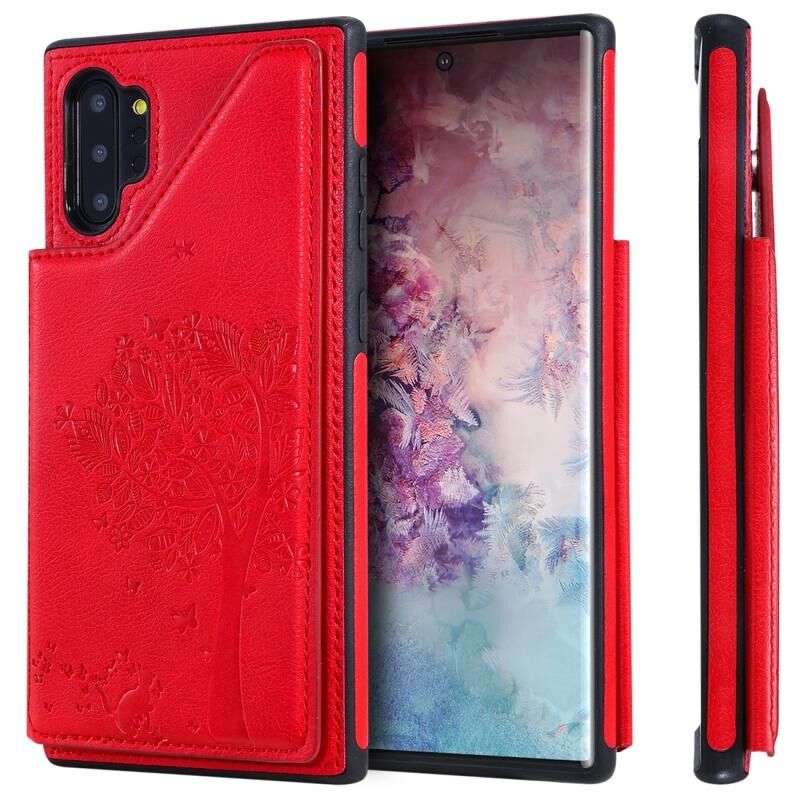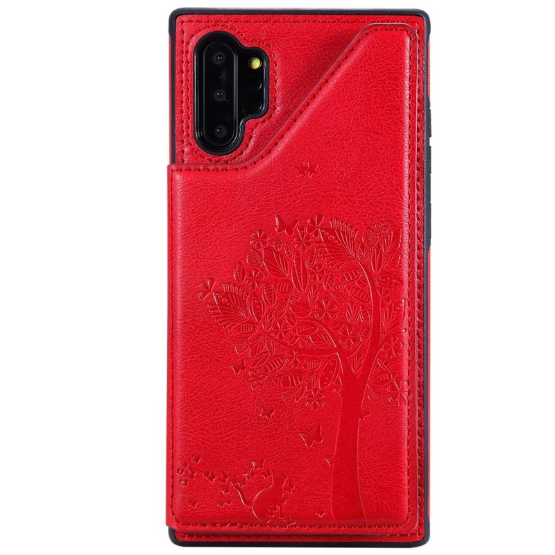 For Galaxy Note 10+ Cat Tree Embossing Pattern Shockproof Protective Case with Card Slots & Photo Frame(Red)