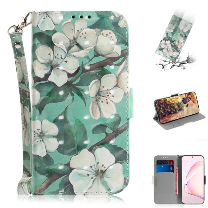 Θήκη δέρματος οριζόντιας αναδίπλωσης με 3D ζωγραφική για Galaxy Note 10 Lite / A81 με βάση στήριξης & υποδοχή κάρτας & πορτοφόλι & κορδόνι (υδάτινα λουλούδια)