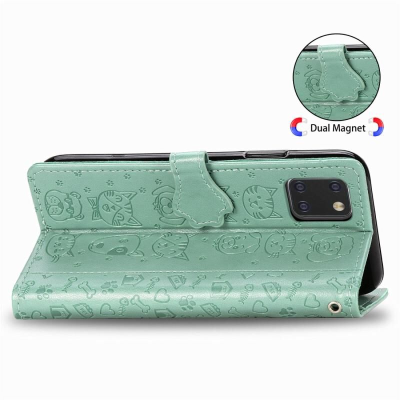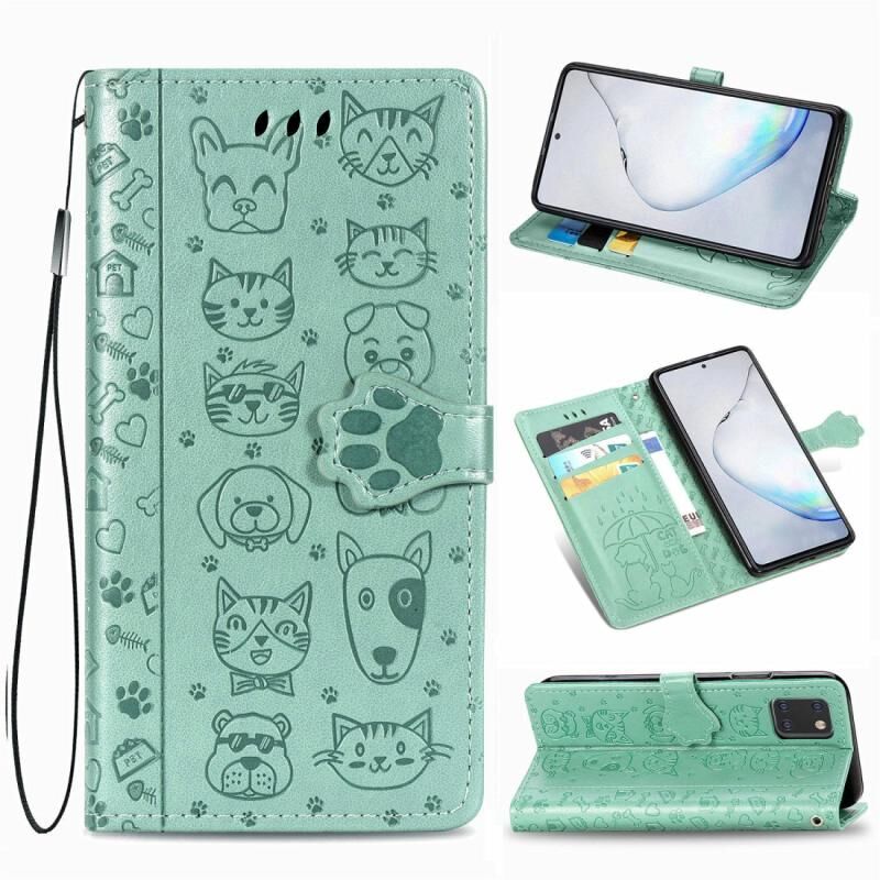 Για Galaxy Note 10 Lite/A81 Χαριτωμένη Θήκη Δέρματος Οριζόντιας Αναδίπλωσης με ανάγλυφα σχέδια Γάτας και Σκύλου με Στήριγμα / Θήκη Κάρτας / Πορτοφόλι / Λουρί (Γκρι)