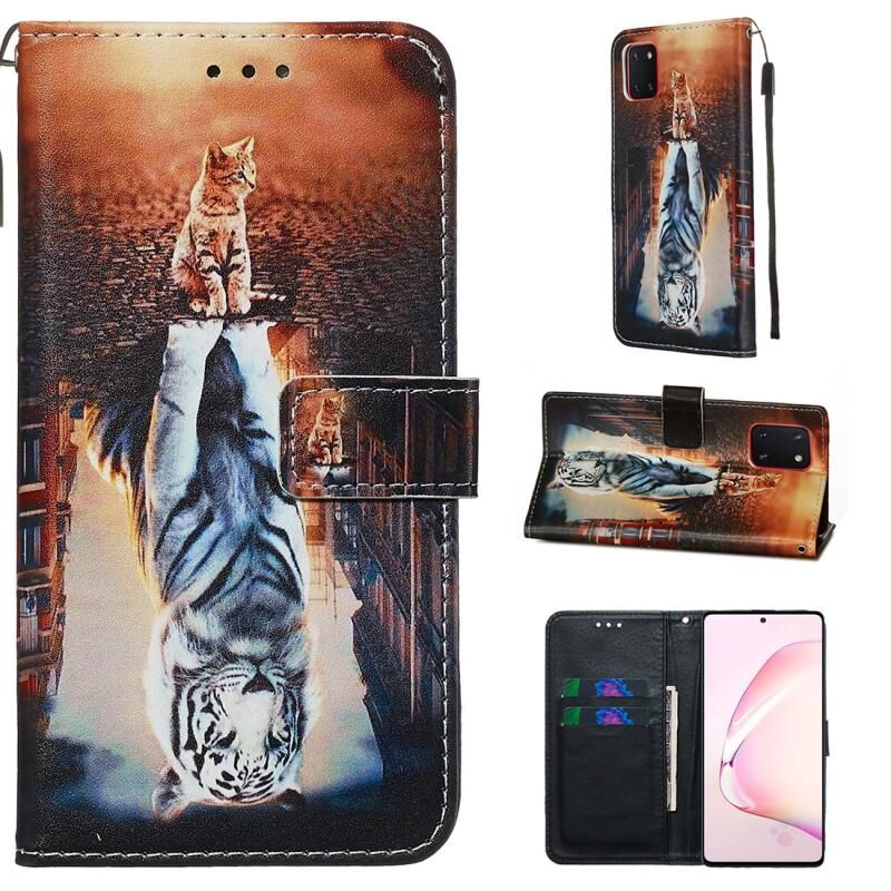 Θήκη δέρματος οριζόντιας αναδίπλωσης με σχέδιο πολύχρωμης ζωγραφικής, απλής ύφανσης για Galaxy Note 10 Lite με βάση στήριξης & υποδοχή κάρτας & πορτοφόλι & κορδόνι (Γάτα και τίγρης)