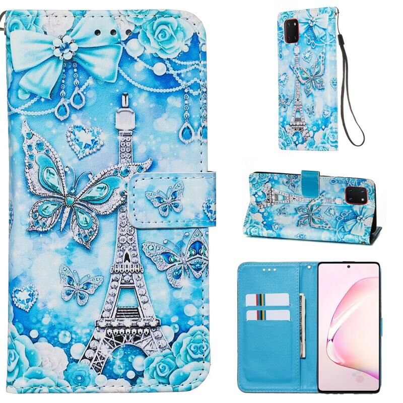 Θήκη δέρματος οριζόντιας αναδίπλωσης για Galaxy Note 10 Lite με σχέδιο πολύχρωμης ζωγραφικής, απλή ύφανση, με βάση & υποδοχή κάρτας & πορτοφόλι & κορδόνι (Πύργος Πεταλούδα)
