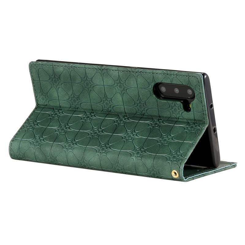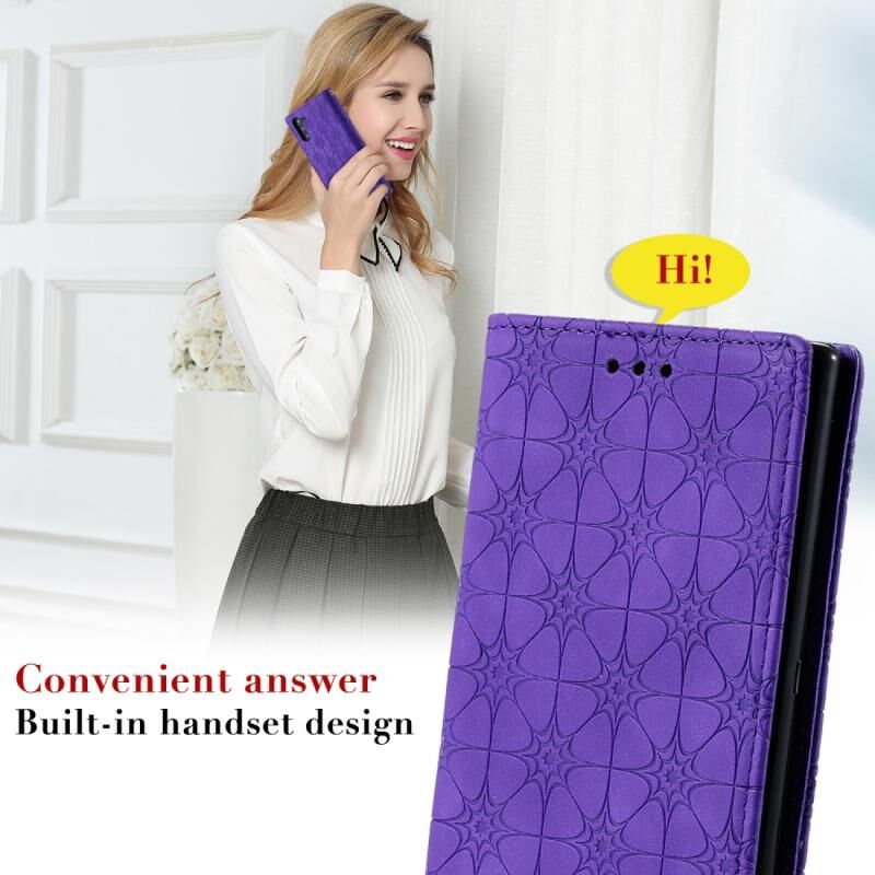 Θήκη δέρματος με μαγνητικό κλείσιμο, οριζόντια, με ανάγλυφο σχέδιο λουλουδιών για Galaxy Note 10, με βάση και θήκες για κάρτες (Μωβ)