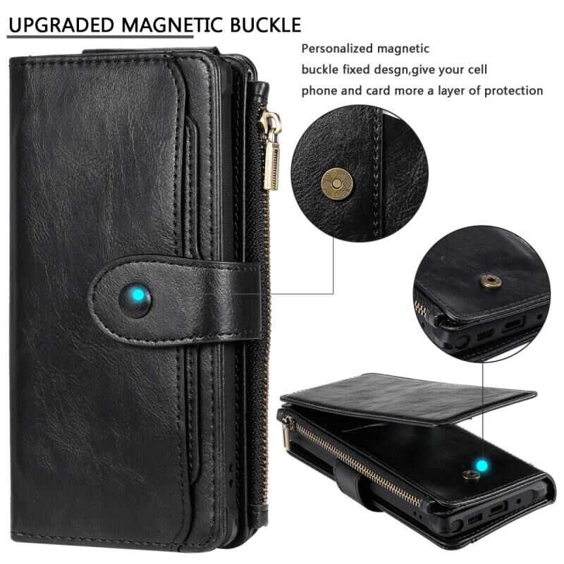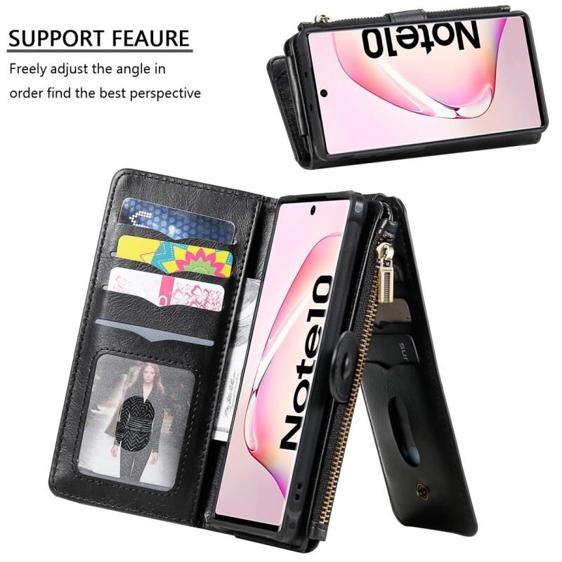 Για Galaxy Note 10 Πολυλειτουργική Ρετρό αποσπώμενη μαγνητική οριζόντια δερμάτινη θήκη με υποδοχές για κάρτες και θήκη για πορτοφόλι και κορνίζα φωτογραφιών (Μαύρο)