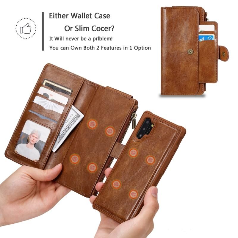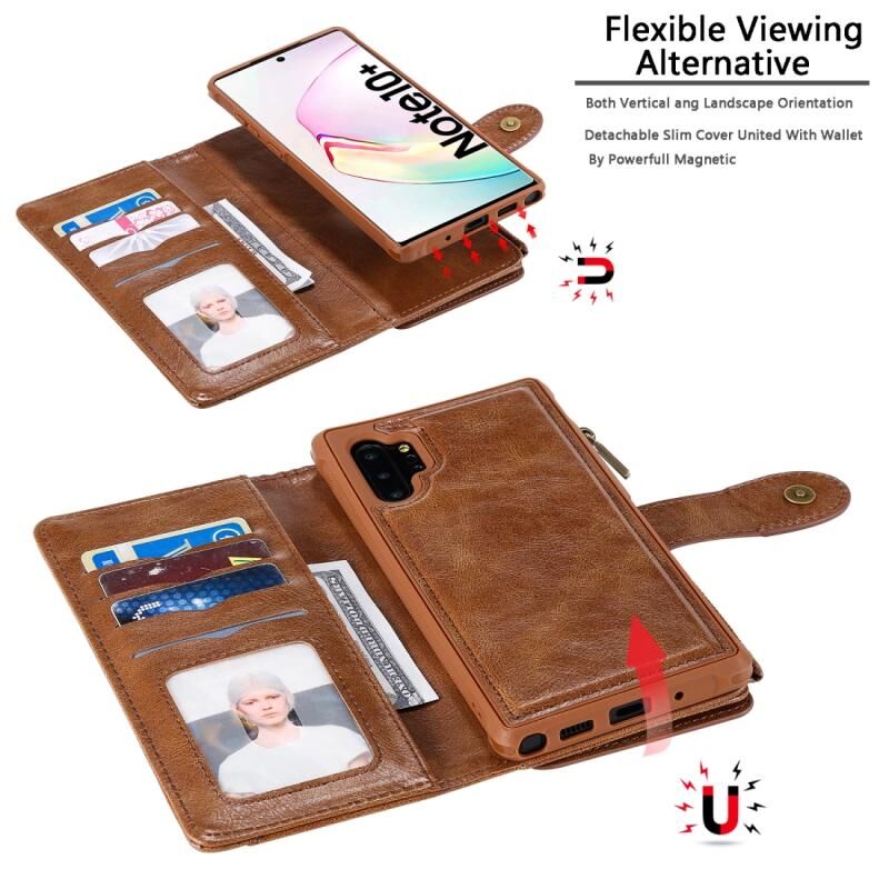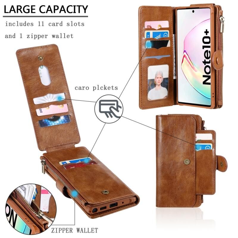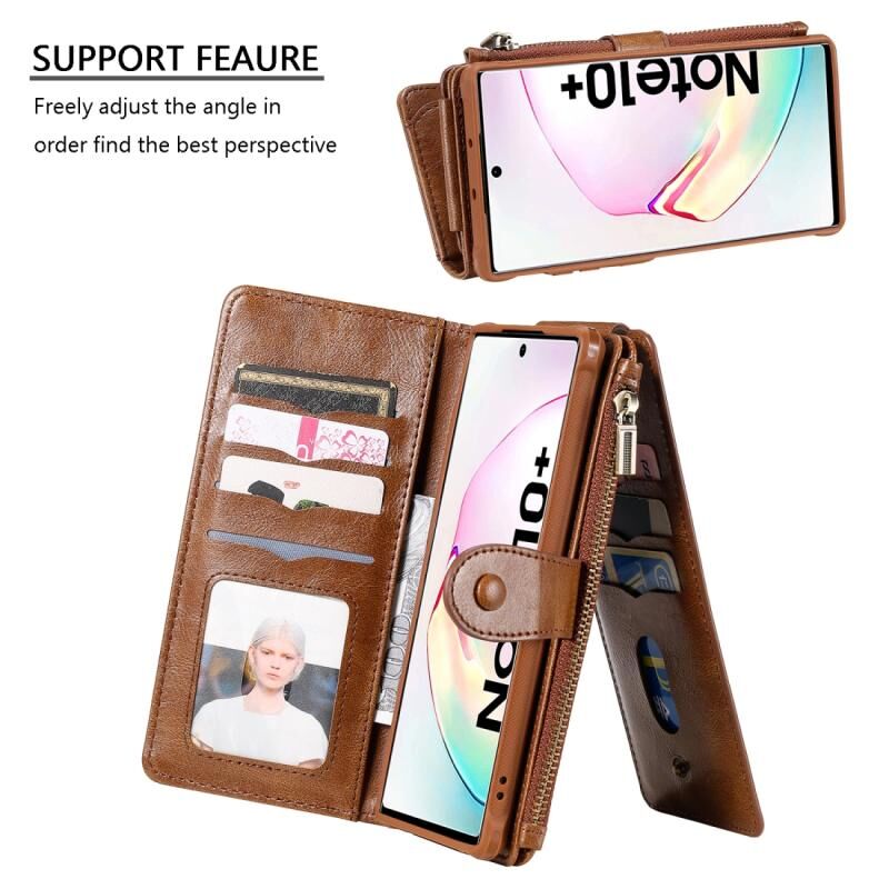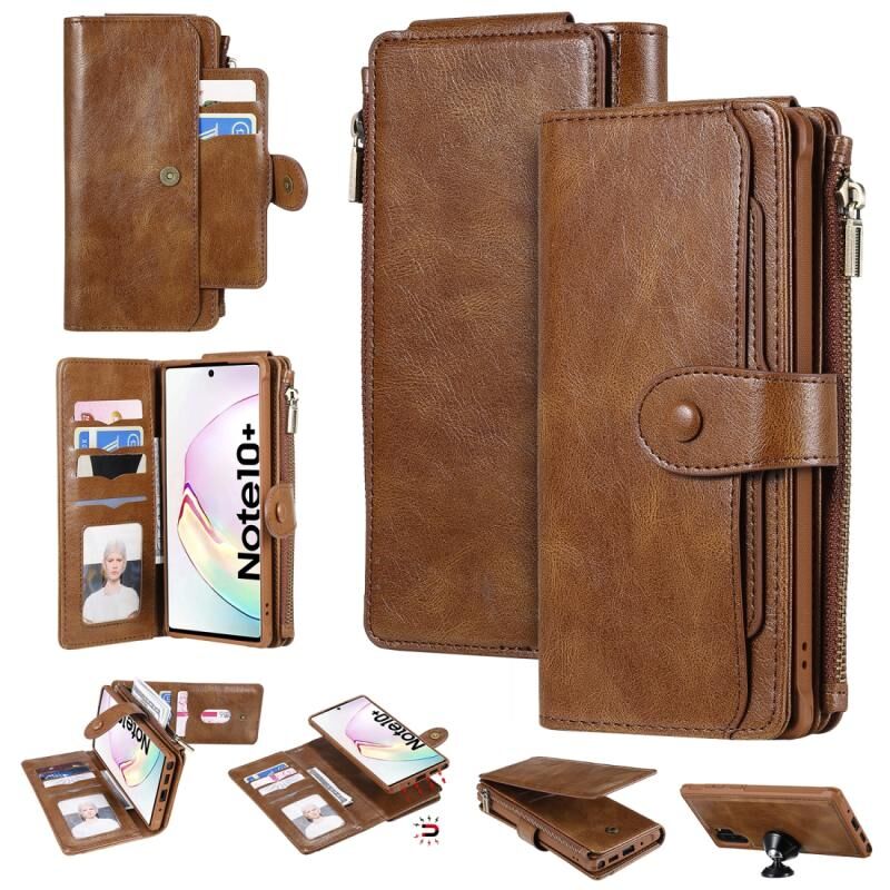 Για Galaxy Note 10+ Πολυλειτουργική Ρετρό αποσπώμενη μαγνητική οριζόντια δερμάτινη θήκη με υποδοχές για κάρτες και θήκη για πορτοφόλι και κορνίζα φωτογραφιών (καφέ)