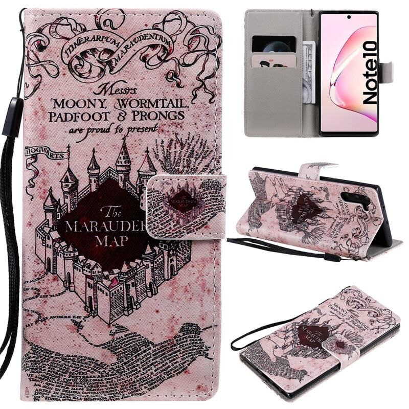 Θήκη δέρματος οριζόντιας αναδίπλωσης με σχέδιο για Galaxy Note 10, με πορτοφόλι & βάση & θήκες καρτών & κορδόνι (Κάστρο)