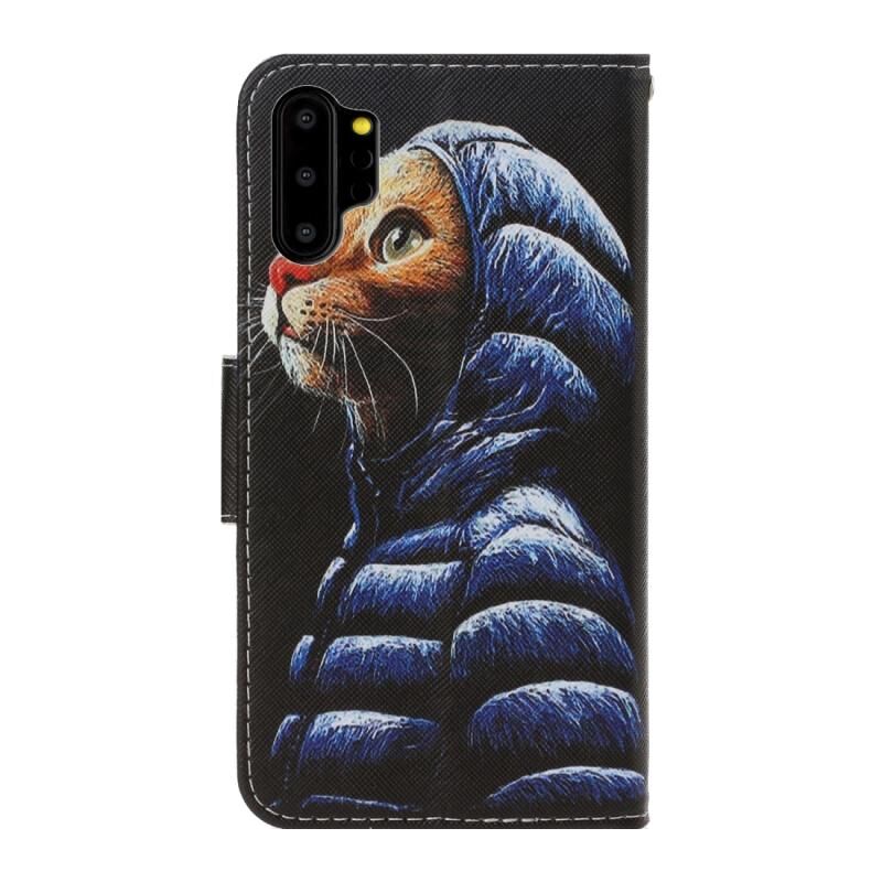Για Galaxy Note 10 Plus 3D Θήκη από Δέρμα PU με Οριζόντιο Άνοιγμα, με Χρώματα και Σχέδιο (Γάτα με Μπουφάν), με Θήκη και Θήκες για Κάρτες & Πορτοφόλι.