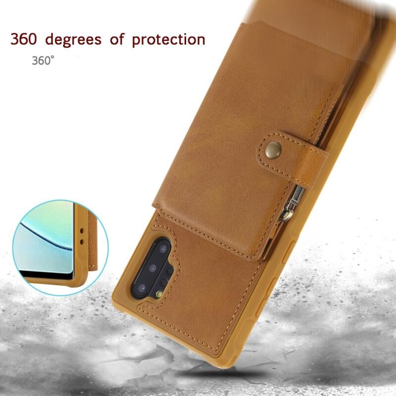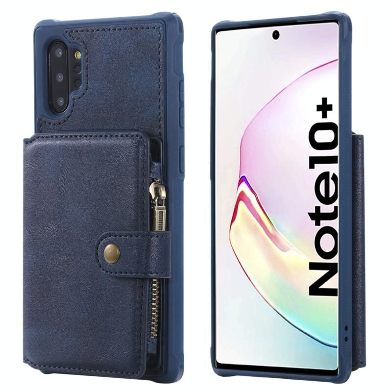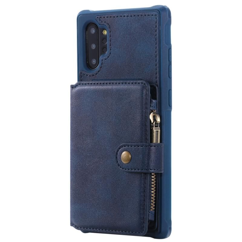 Για Galaxy Note 10 Plus Πόρπη φερμουάρ Shockproof προστατευτική θήκη με θήκη & υποδοχές για κάρτες & πορτοφόλι & κορδόνι & κορνίζες για φωτογραφίες (Μπλε)