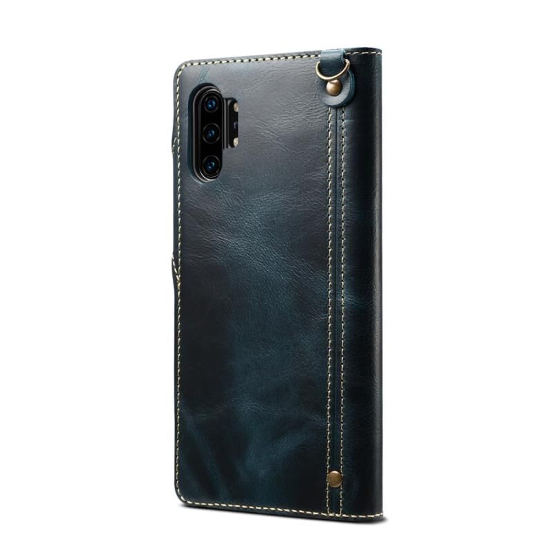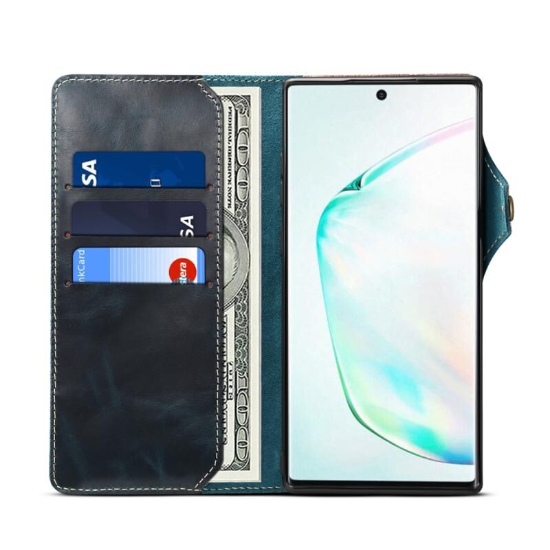 Για Galaxy Note 10 Plus Denior Oil Wax Cowhide μαγνητικό κουμπί οριζόντια Flip δερμάτινη θήκη με υποδοχές για κάρτες & πορτοφόλι (σκούρο μπλε) (Denior)