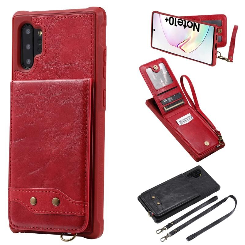 Για Galaxy Note 10 Plus Κάθετη Flip πορτοφόλι Shockproof πίσω κάλυμμα προστατευτική θήκη με υποδοχή & υποδοχές καρτών & κορδόνι & φωτογραφίες πλαίσια (κόκκινο)