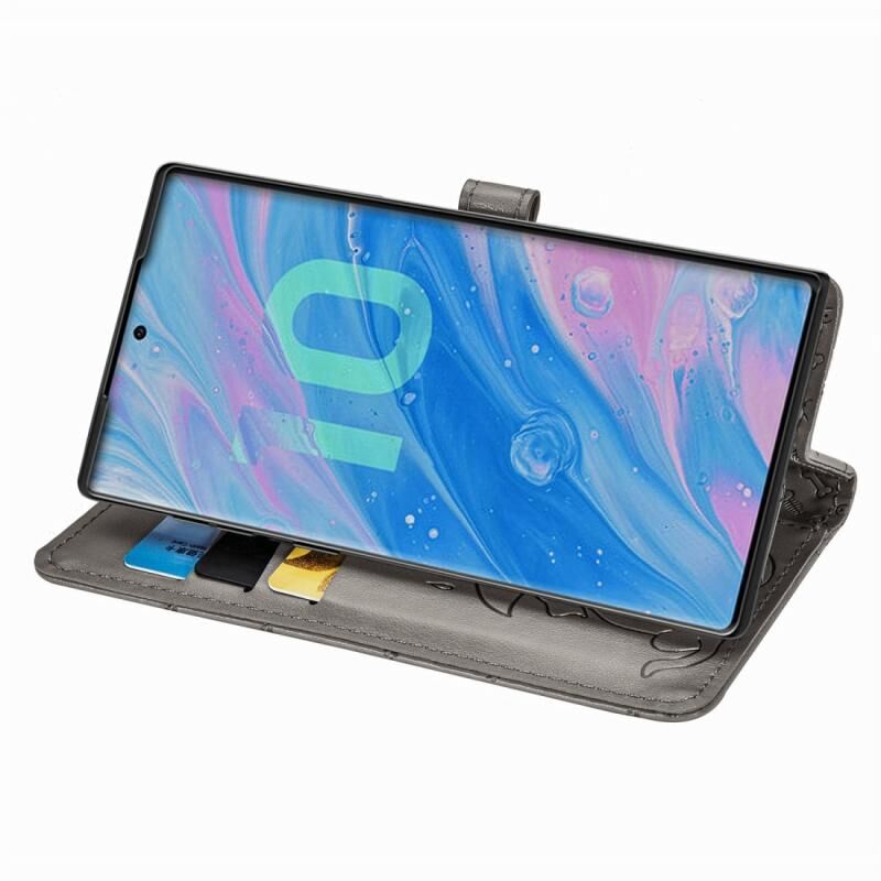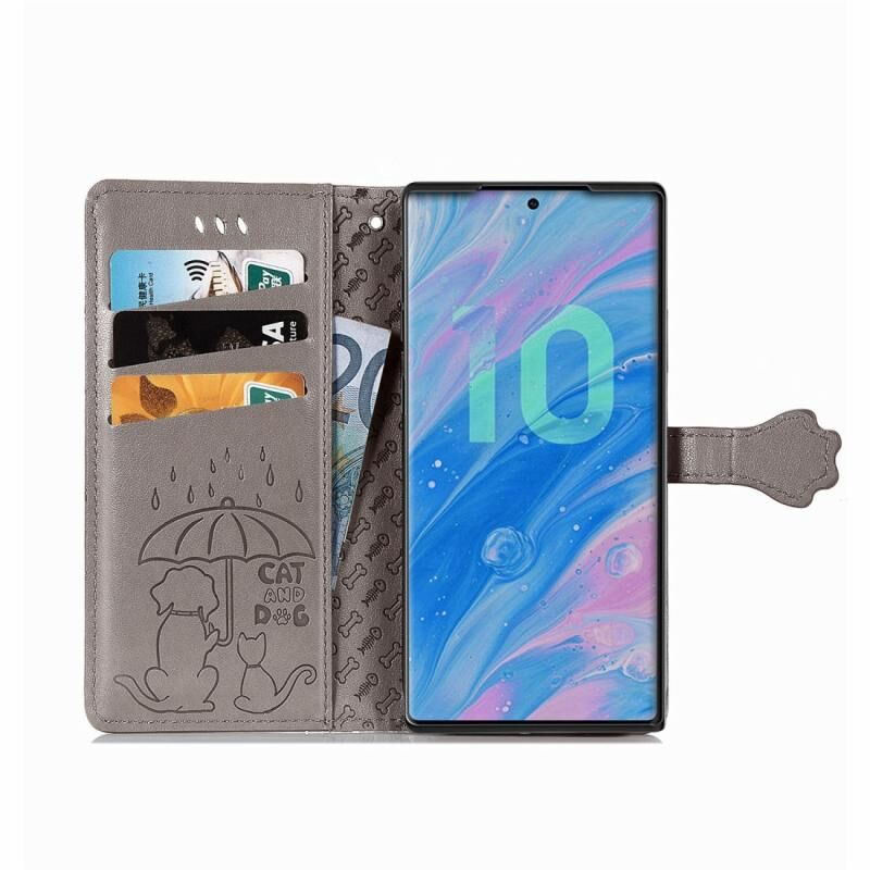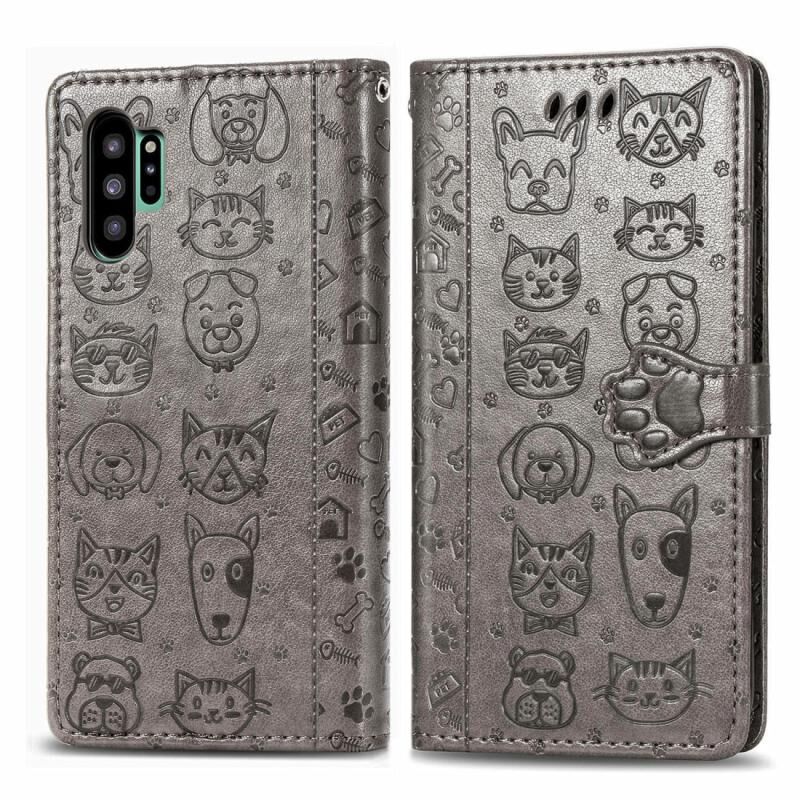 Θήκη δέρματος οριζόντιας αναδίπλωσης με ανάγλυφα σχέδια χαριτωμένων γάτας και σκύλου για Galaxy Note 10 Pro, με βάση / υποδοχή κάρτας / πορτοφόλι / κορδόνι (Γκρι)