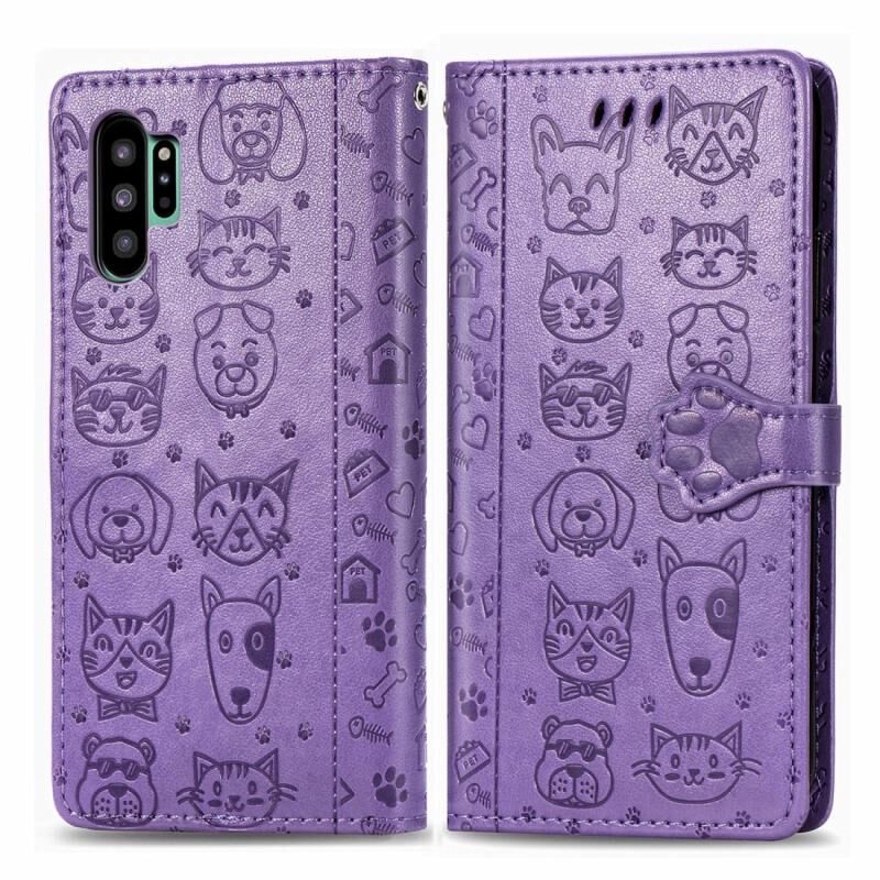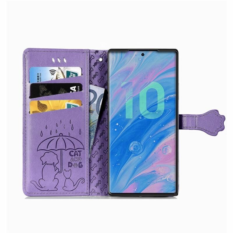 Θήκη δέρματος οριζόντιας αναδίπλωσης με ανάγλυφα σχέδια χαριτωμένων γάτας και σκύλου για Galaxy Note 10 Pro, με βάση / υποδοχή κάρτας / πορτοφόλι / κορδόνι (Χρυσό ροζ)