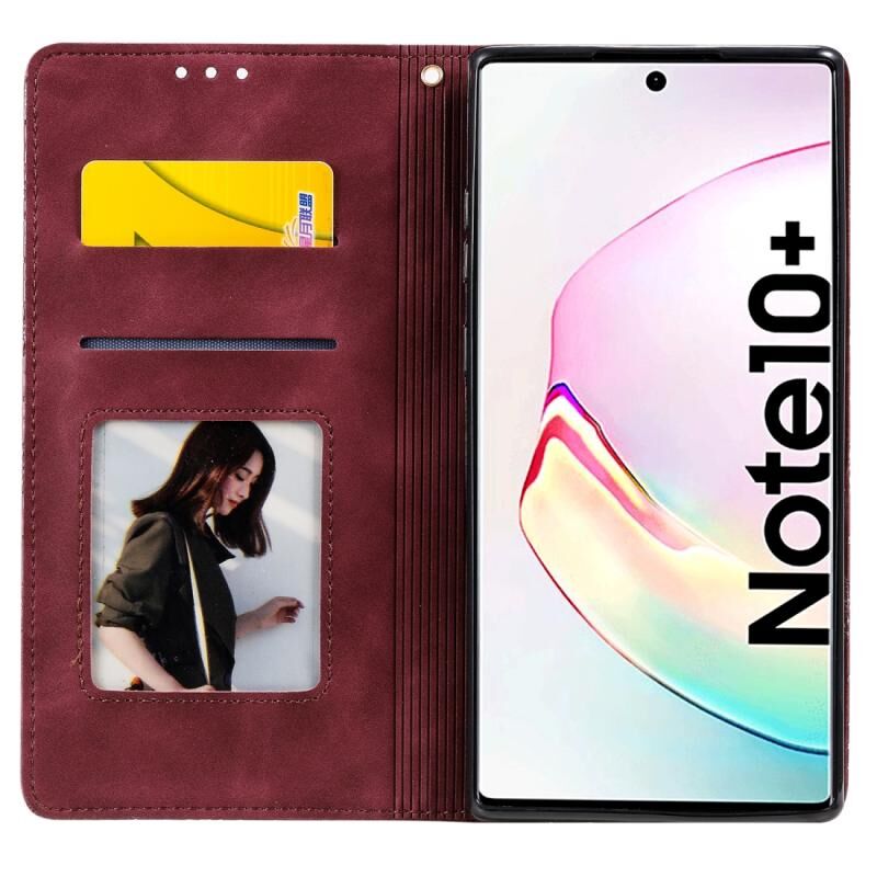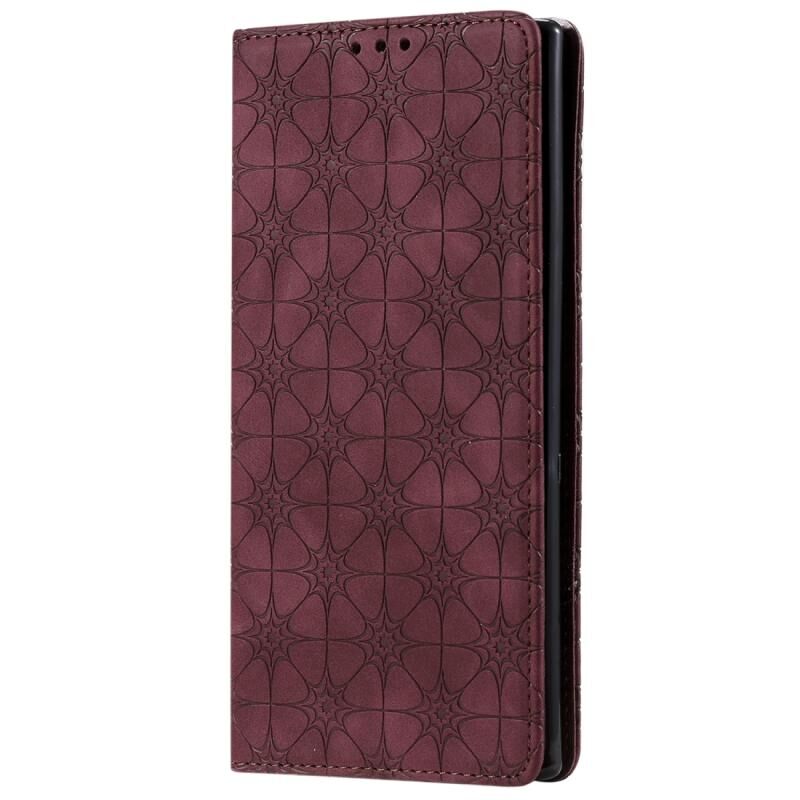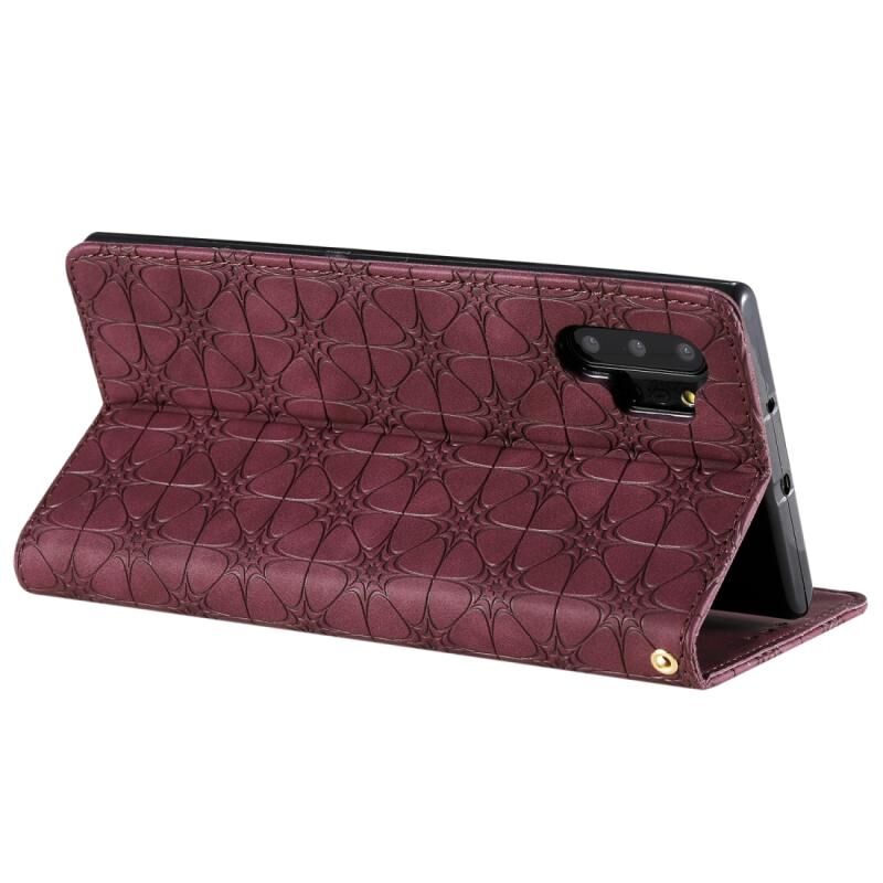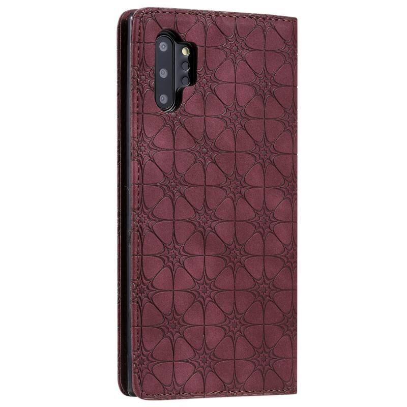 Θήκη δέρματος με μαγνητικό κλείσιμο, οριζόντια, με ανάγλυφο σχέδιο τυχερών λουλουδιών για Samsung Galaxy Note 10 Pro, με βάση και θήκες για κάρτες (Κρασοκόκκινο)