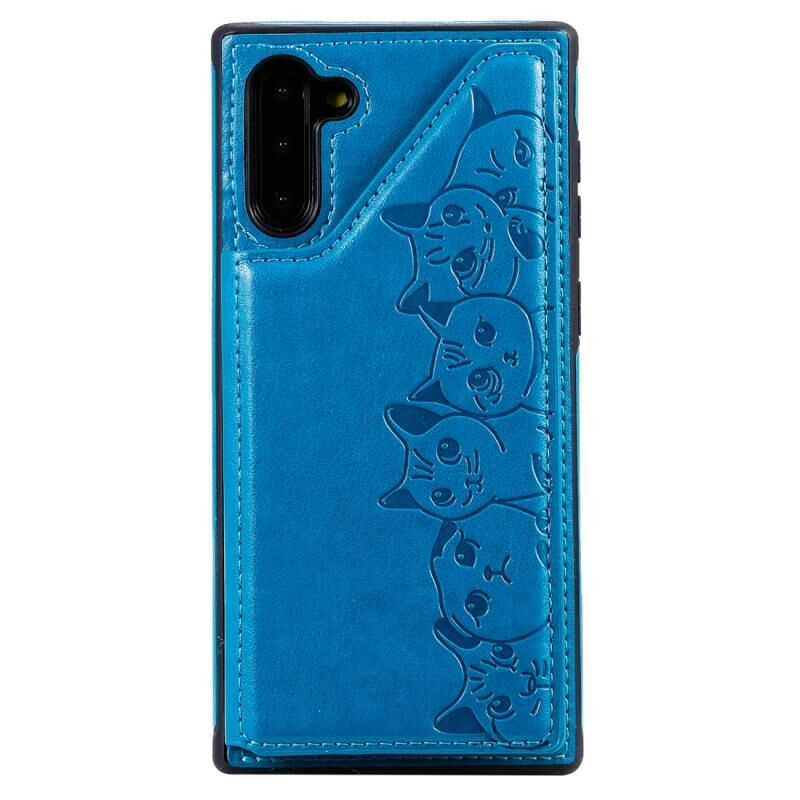 Θήκη προστασίας με ανάγλυφο σχέδιο έξι γατών για Galaxy Note 10 με βάση στήριξης & θήκες καρτών & κορνίζα φωτογραφιών (Μαύρο)