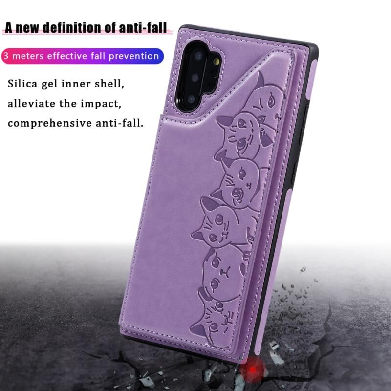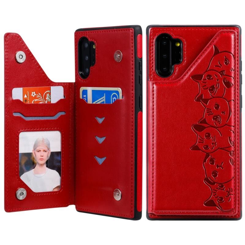 Θήκη προστασίας με ανάγλυφο σχέδιο έξι γατών για Galaxy Note 10+ με βάση στήριξης & θήκες καρτών & κορνίζα φωτογραφιών (Κόκκινο)