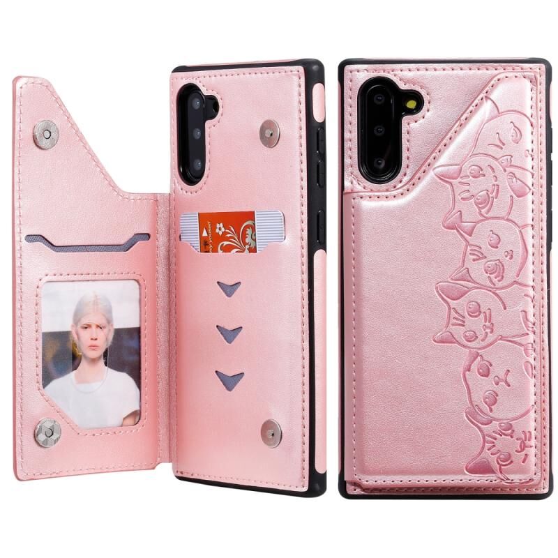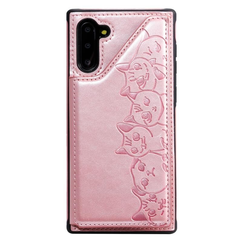 Θήκη προστασίας με ανάγλυφο σχέδιο έξι γατών για Galaxy Note 10 με βάση στήριξης & θήκες καρτών & κορνίζα φωτογραφιών (Μαύρο)