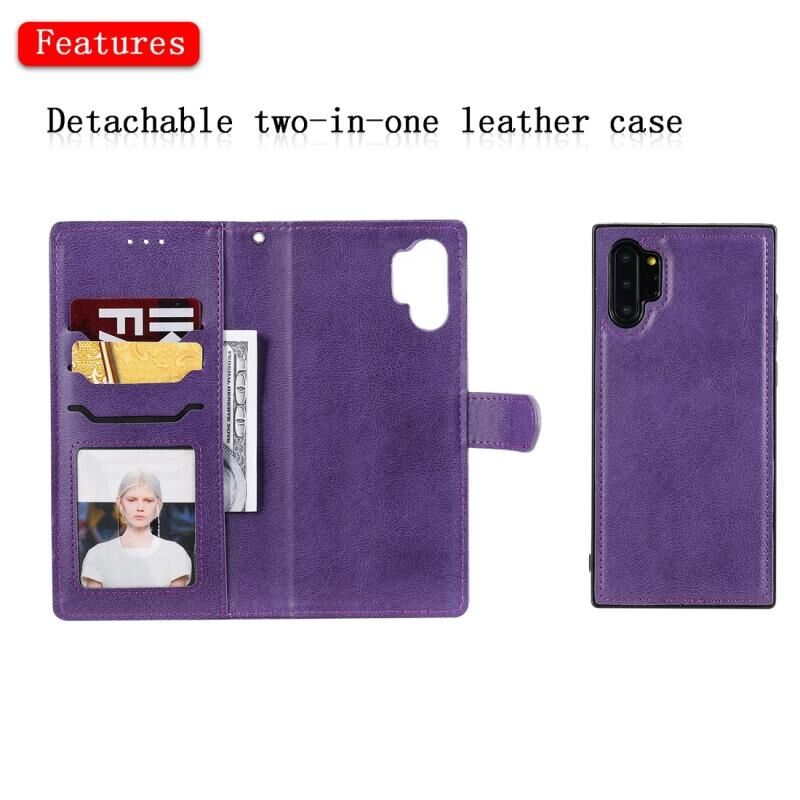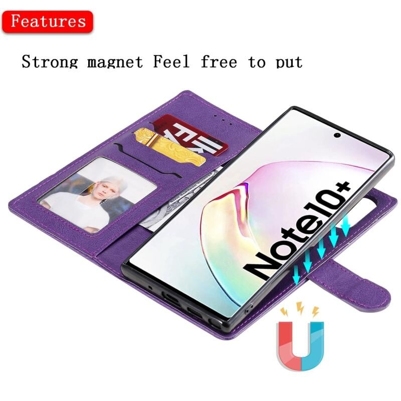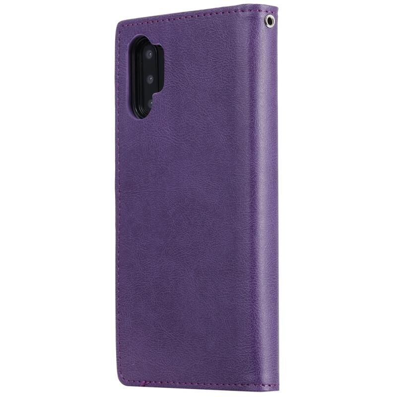 Για Galaxy Note 10+ Αμιγές χρώμα οριζόντια Flip προστατευτική θήκη με θήκη & υποδοχές για κάρτες & πορτοφόλι & πλαίσιο φωτογραφιών & κορδόνι (Μωβ)
