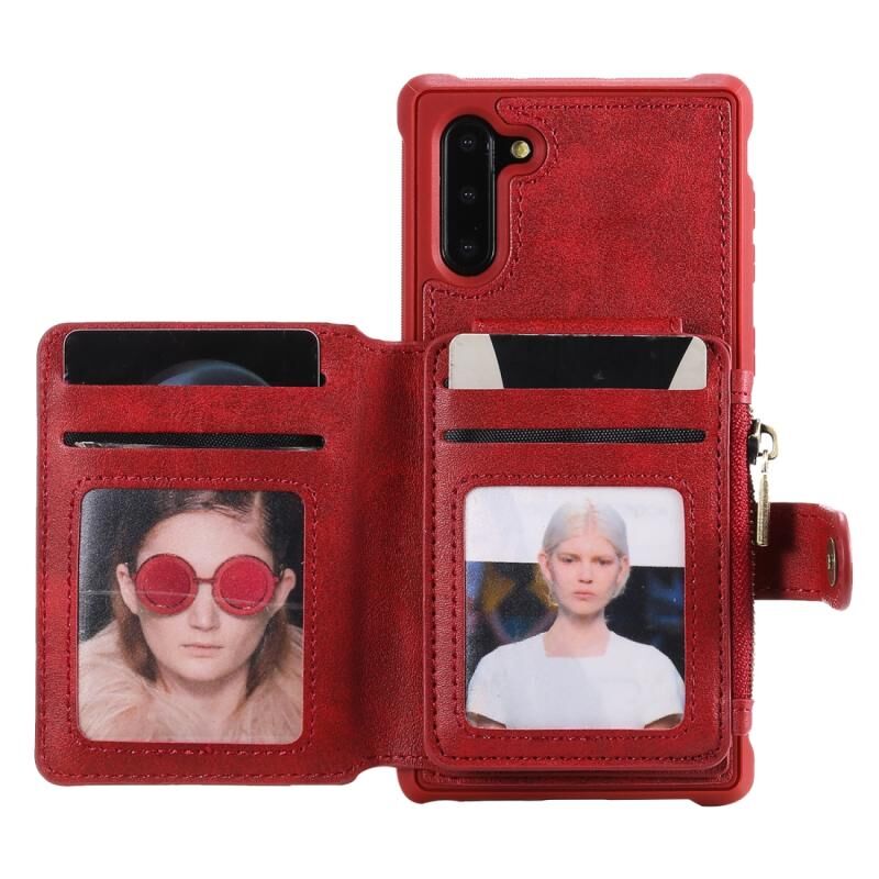 Για Galaxy Note 10 φερμουάρ Αδιάβροχη προστατευτική θήκη με υποδοχές για κάρτες & βραχίονα & υποδοχή φωτογραφιών & λειτουργία πορτοφολιού (κόκκινο)