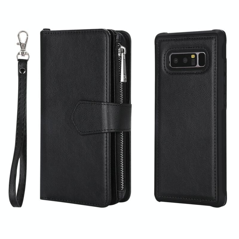 Για Galaxy Note 8 2 σε 1 Αμιγές χρώμα φερμουάρ Shockproof προστατευτική θήκη με υποδοχές για κάρτες & βραχίονα & φωτογραφική θήκη & λειτουργία πορτοφόλι (μαύρο)