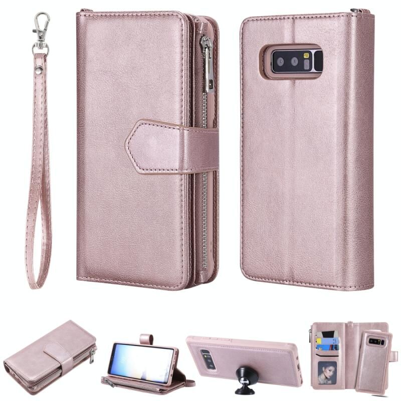 Για Galaxy Note 8 2 σε 1 Αμιγές χρώμα φερμουάρ Shockproof προστατευτική θήκη με υποδοχές για κάρτες & βραχίονα & φωτογραφική θήκη & λειτουργία πορτοφόλι (Rose Gold)