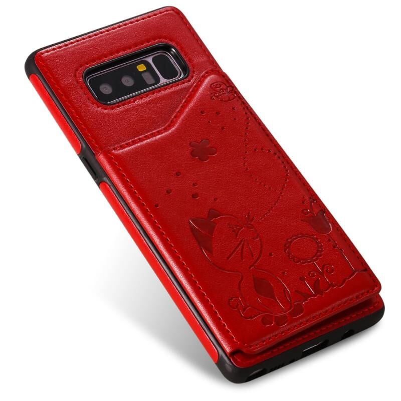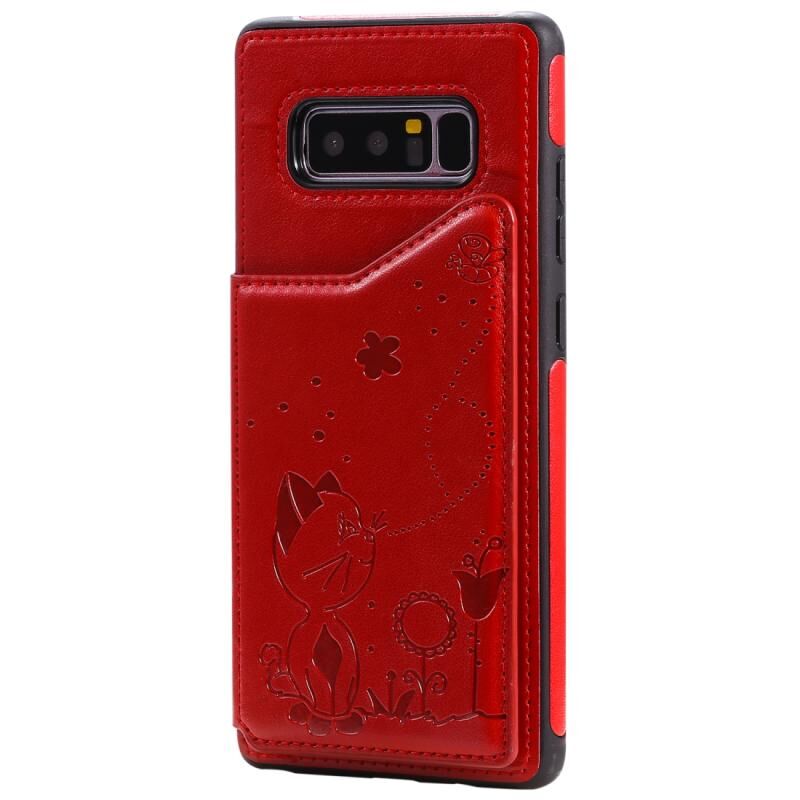 Θήκη προστασίας με ανάγλυφο σχέδιο Cat Bee για Galaxy Note 8, ανθεκτική στις κρούσεις, με θήκες για κάρτες & κορνίζα φωτογραφιών (Κόκκινο)