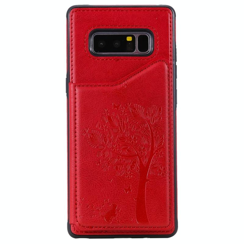 For Galaxy Note 8 Cat Tree Embossing Pattern Shockproof Protective Case with Card Slots & Photo Frame(Red)